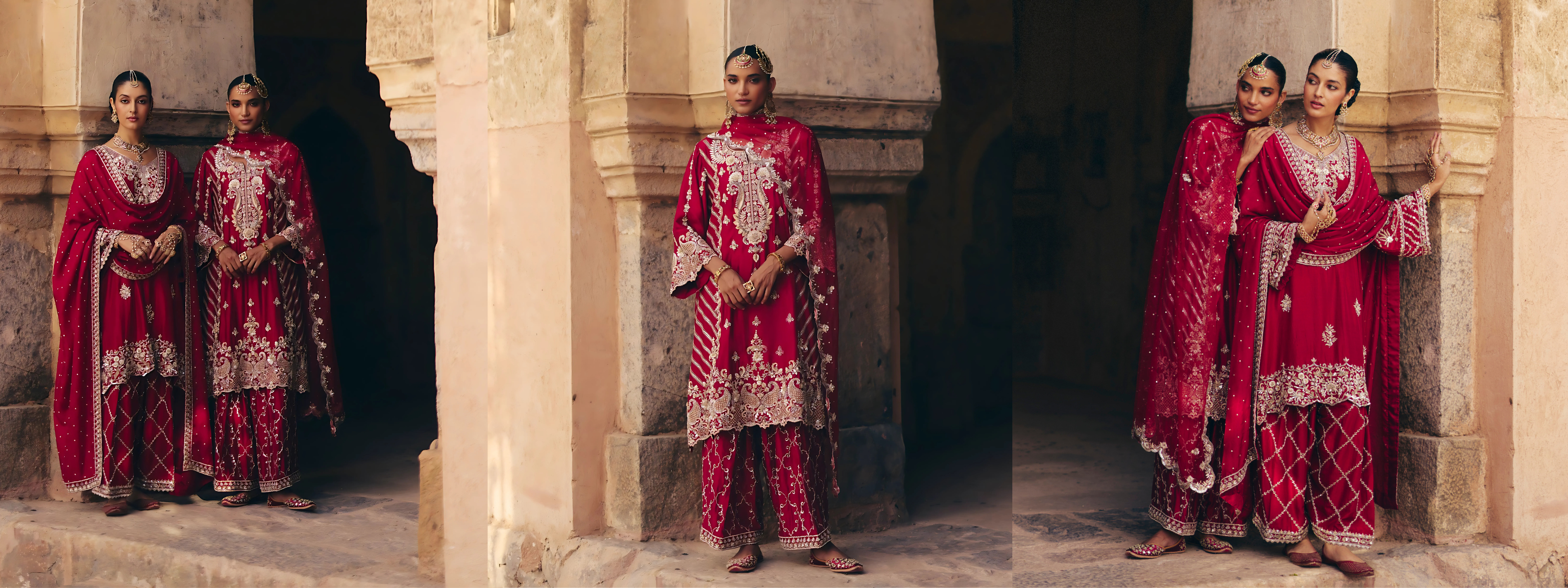 From delicate hand embroidery to rich, luxurious fabrics, each piece is thoughtfully crafted as a true labor of love. Our collections celebrate the beauty of Indian craftsmanship, blending age-old techniques with a refined modern aesthetic. Every stitch tells a story, every detail reflects the devotion of skilled hands. We strive to honour tradition while creating silhouettes that speak to today’s woman graceful, confident, and timeless. The result is a collection of outfits that feel both rooted and refreshing, made to be worn in moments that matter and remembered for years to come.